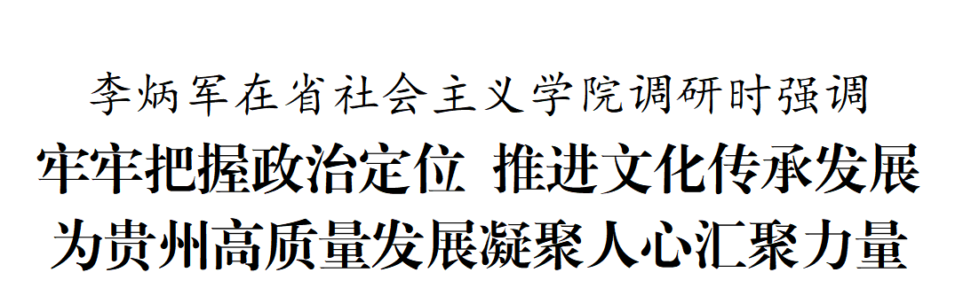 3月31日,省委副书记、省长李炳军到省社会主义学院调研。他强调,要深入学习贯彻习近平总书记关于做好新时代党的统一战线工作的重要思想和在贵州考察时的重要讲话精神,落实《社会主义学院工作条例》要求,牢牢把握政治定位,持续提高办学质量,推进文化传承发展,为贵州高质量发展凝聚人心、汇聚力量。省领导张敬平、张光奇参加。